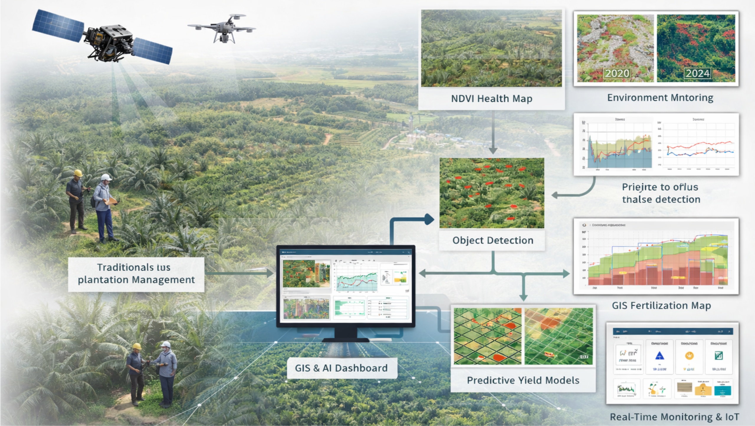 This is where geospatial technology and artificial intelligence fundamentally change the game. With satellite imagery captured every few days, unmanned aerial vehicles that can fly autonomously along preprogrammed coordinates, and algorithms capable of processing millions of pixels in minutes, plantation managers gain full visibility into plantation conditions in real time or near real time.