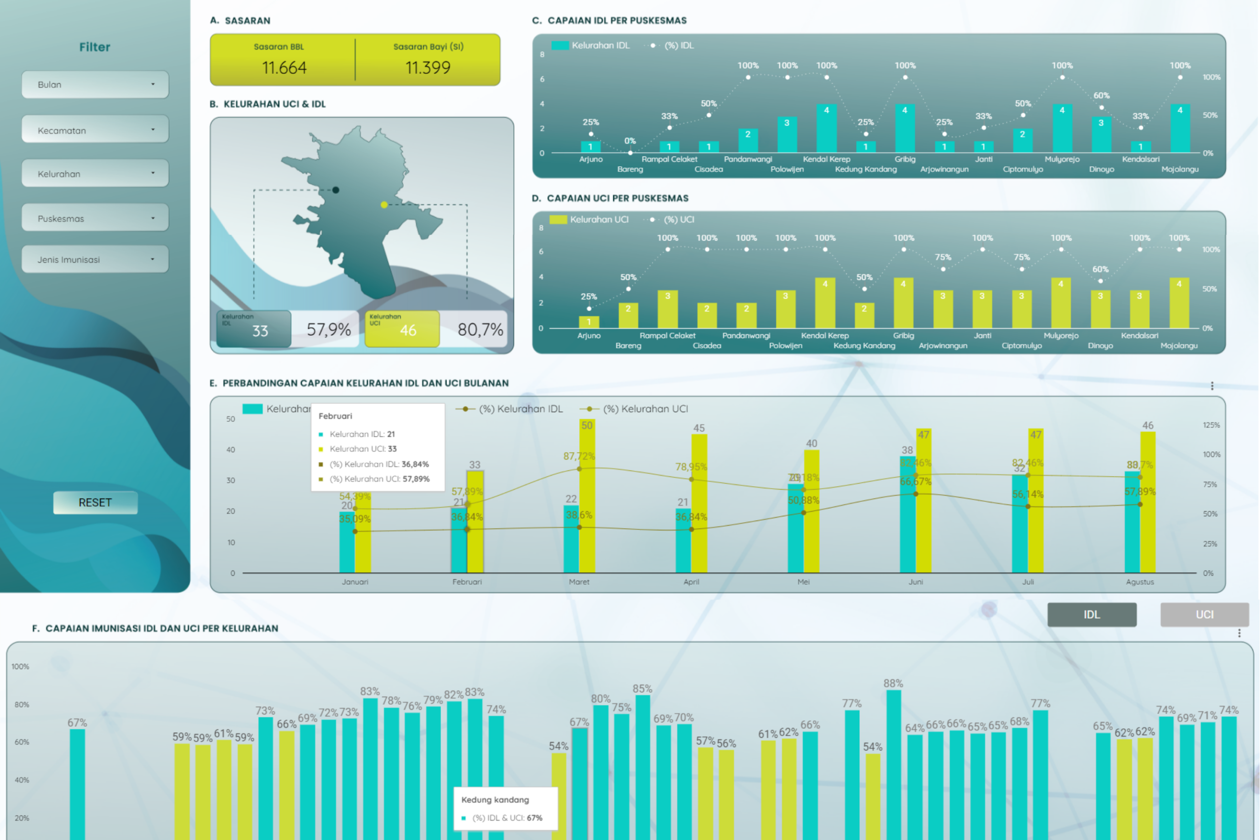 A software-based platform called Enterprise Dashboard Software is used to gather, analyze, and display operational and performance data from different departments or functions inside a company as a decision support tool. Enterprise Dashboard Software for Disease Prevention and Control is a dashboard created especially as a Decision Support System to helpDinas Kesehatan Kota Malang carry out monitoring and assessment procedures pertaining to disease prevention and control.